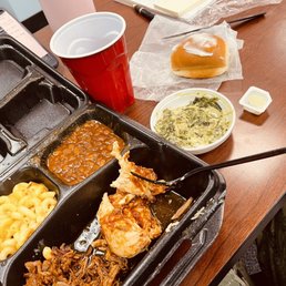 Omg what can I say! SL's SH definitely gets a 10/10 in my book! This was the first time for me eating at this restaurant. I was really looking for some good bbq on my side of town and a friend recommended it. The Cashier Madison was very helpful as I explained to her it was my first time visiting and I didn't know how the ordering or seating worked. You can order at the front and get a table number to place at your table. Then the wait staff will bring our your food to your table. Drinks are self serve from the fountain machine. The theme inside is like wooden barn decor. Bench booths and tables. The music was nice too. Think Country. All the food we got were ribs, bbq pulled chicken, bbq keibasa, sliced beef brisket, cheesy spinach, Mac & cheese, tangy cucumber tomato salad, greens and corn bread! Omg the corn bread was amazing! So moist and with a touch of sweetness. Served with butter on the side. The food was so good I had to order more to take home. I thoroughly enjoyed myself and definitely will be returning again. Thanks to everyone at SL's SH!