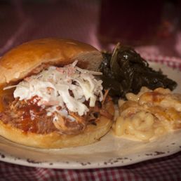 1st time here and was not disappointed!! Young lady at the counter was super friendly. I ordered the BBQ Pulled Pork Platter, which comes with 2 sides and a choice of cornbread or roll. I chose cornbread. My daughter ordered the BBQ Pulled Pork Sandwich Platter that came with 2 sides. My sides were coleslaw and Mac & cheese. She chose Mac & cheese and mashed sweet potatoes. I have NC roots and picky about pulled pork...Sweet Lucy did not disappoint!!! The pork was seasoned perfectly and went very well with the coleslaw. Mac & cheese was a little juicy, but it was good. Mashed sweet potatoes...my, my, my!!! All that was missing was a brown sugar crumble topping. The cornbread had actual corn kernels in it! There was a bar in there but I didn't indulge. I went with the sweet tea. All sodas are self serve, as well as the condiments. It's also self seating. I finished my meal with the apple crisp. Definitely enough for 2 people, simply delicious! Sweet Lucy's has Mission BBQ beat by a long shot!!!